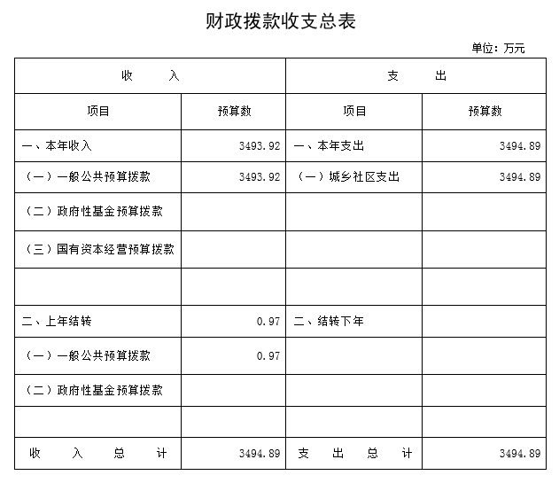注册中心2021年财政拨款收支总预算3494.89万元。收入包括:一般公共预算财政拨款收入3493.92万元、上年结转0.97万元。支出全部为城乡社区支出3494.89万元。