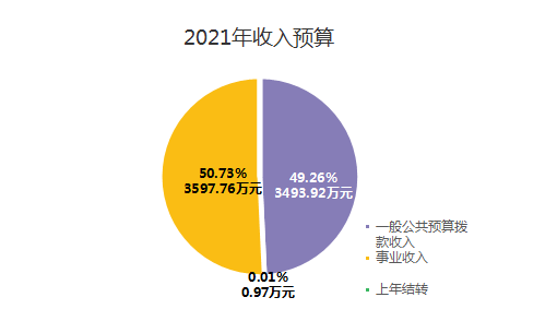 注册中心2021年收入预算7092.65万元,其中:一般公共预算拨款收入3493.92万元,占49.26%;事业收入3597.76万元,占50.73%;上年结转0.97万元,占0.01%。